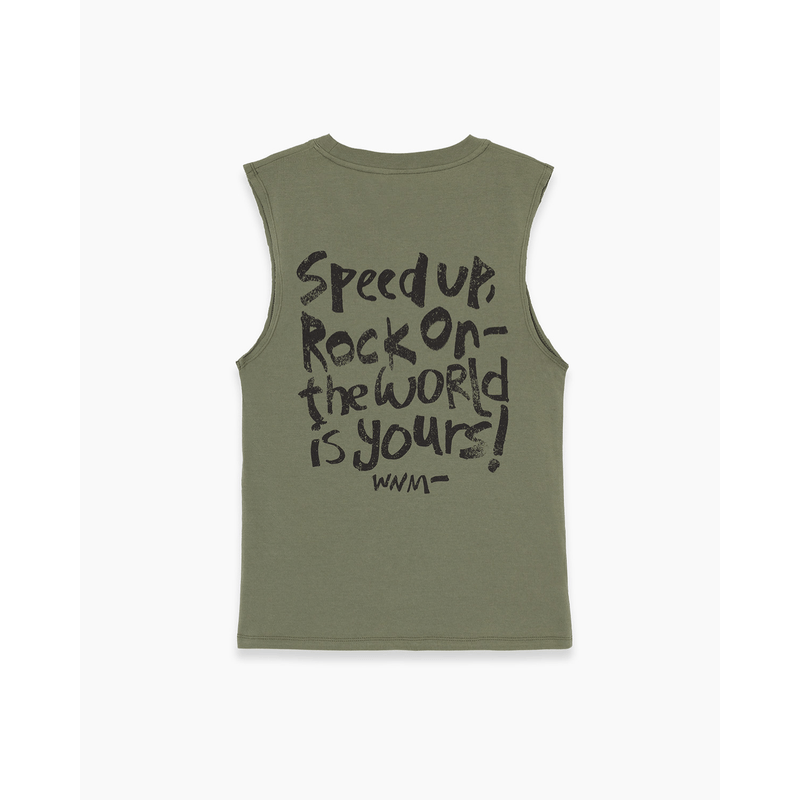 Musculosa confeccionada en algodón. Posee sisas con terminación al corte y estampa en frente y espalda. Calce relajado. Es ideal para combinarla con las mallas de la colección.