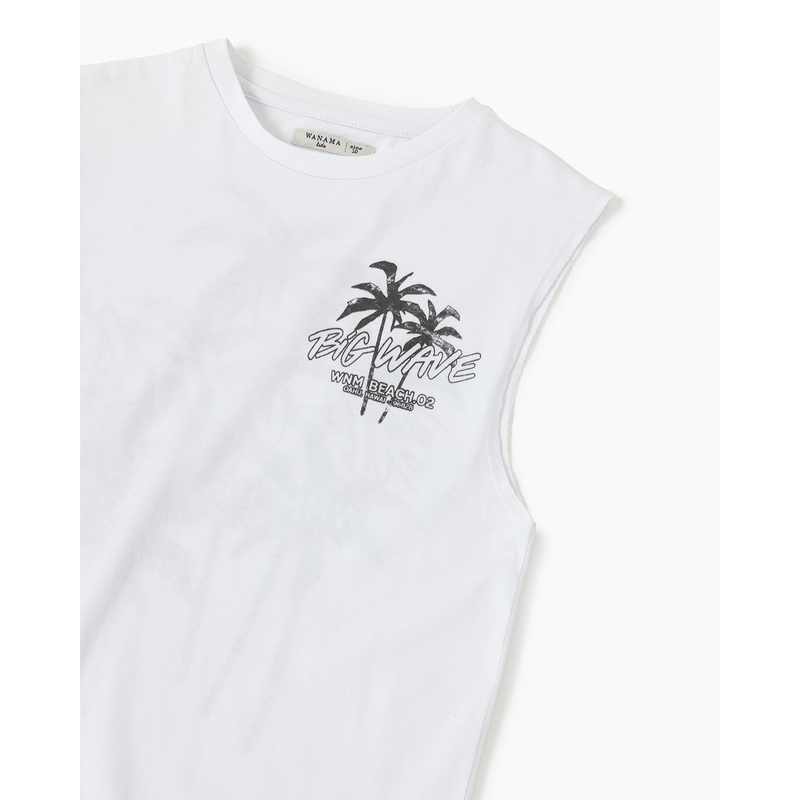 Musculosa confeccionada en jersey de algodón. Posee sisas con terminación al corte y estampa en frente y espalda especialmente diseñadas para esta colección. Calce relajado. Es ideal para combinarla con los trajes de baño de este verano.