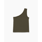 Top confeccionado en algodón con lycra de un solo hombro. Calce fit, largo a la cintura. Posee un bordado.