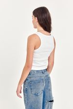Musculosa de algodón con cuello redondo y terminación en punto elástico. Tiene una silueta clásica con largo por debajo de la cintura. Un básico versátil para usar con jeans rectos, pantalones wide o faldas livianas. Composición: 100% algodón. Cuidados: Lavar con agua fría. No usar blanqueadores. Secar a la sombra.