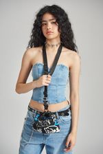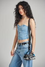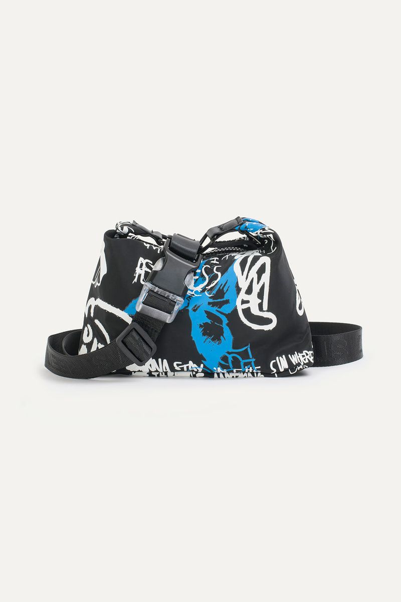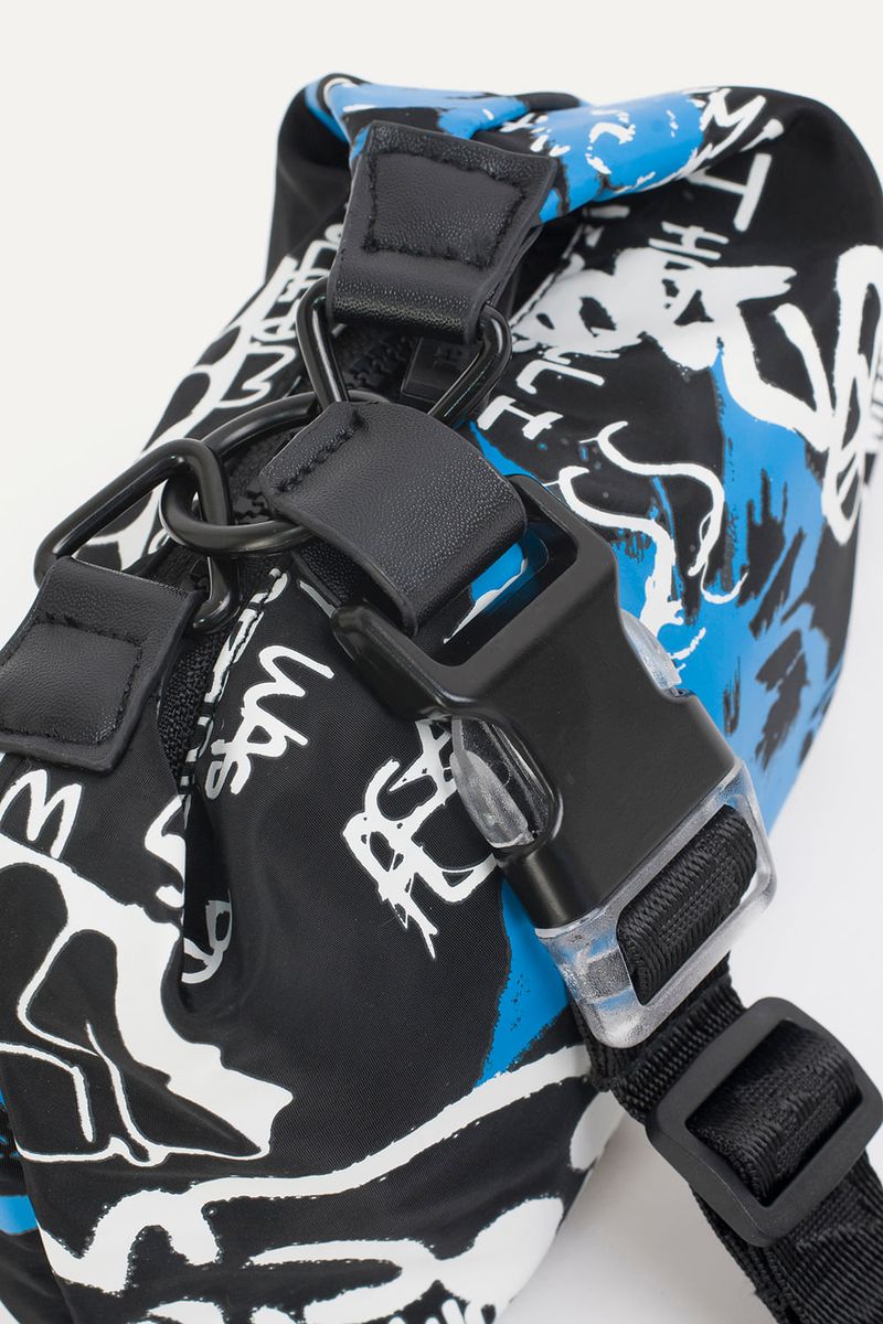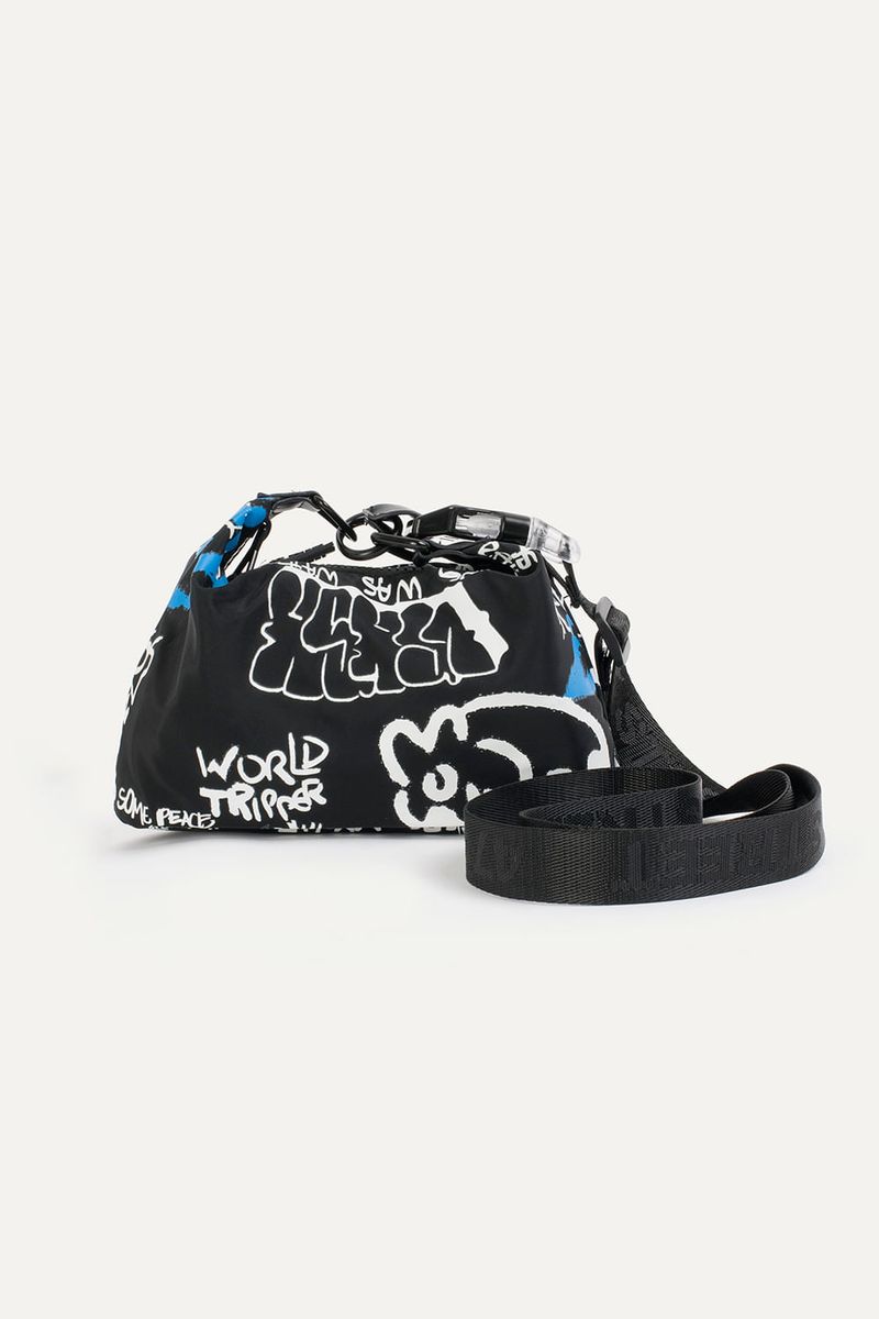 Mini contenedor de nylon estampado con correa tejida desmontable.