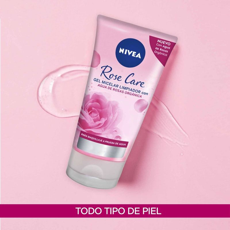 NIVEA Rose Care Gel Limpiador Facial Micelar remueve suavemente el maquillaje a prueba de agua sin frotar. Limpia profundamente, purifica la piel y controla la oleosidad inmediatamente, con Agua de Rosas Orgánica que ayuda a devolver la hidratación a tu piel, dejándola limpia, suave e hidratada.