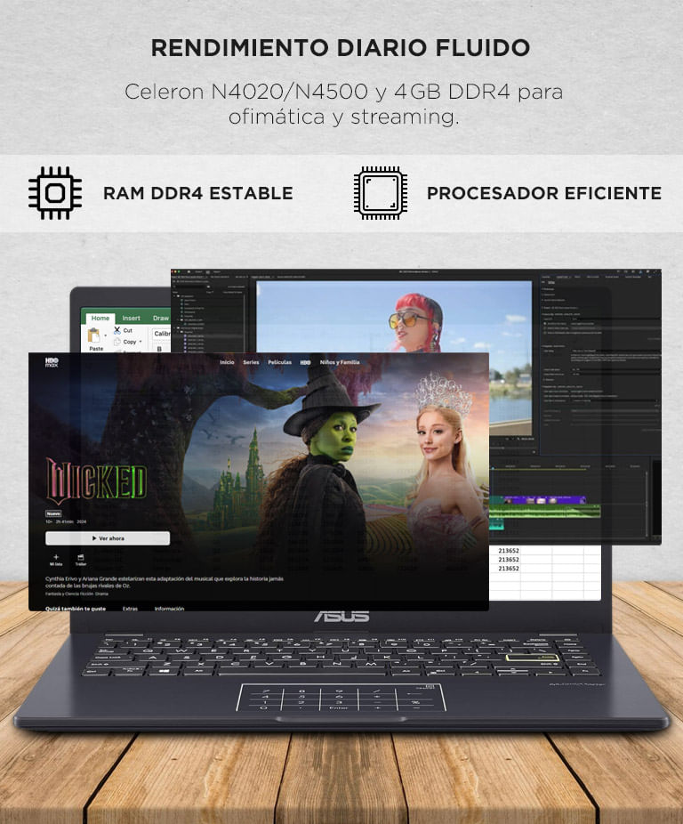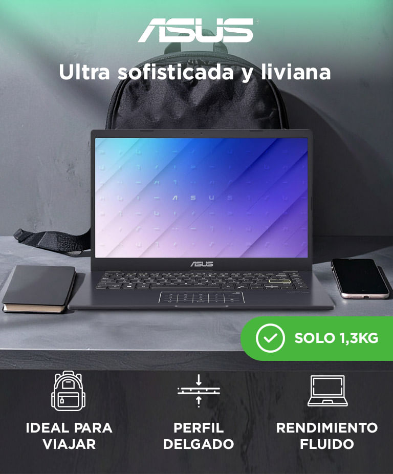 La Asus Vivobook Go 14 fue diseñada para brindarte movilidad sin esfuerzo. Su peso liviano y diseño compacto la convierten en la compañera ideal para estudio, trabajo o entretenimiento en movimiento.