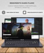 Equipada con procesador Intel Celeron N4020, 4?GB de RAM y disco SSD de 128?GB, esta notebook ofrece un desempeño ágil para navegación web, trabajos de oficina y contenido multimedia.