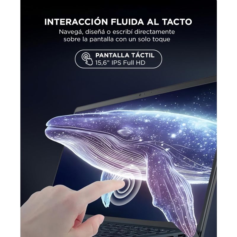 Su pantalla táctil de 15.6” Full HD IPS con resolución de 1920×1080 brinda imágenes nítidas y colores realistas, ideal para trabajo, estudio y entretenimiento.