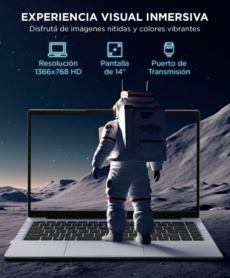 Pantalla 14" HD con diseño compacto y liviano: