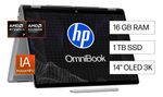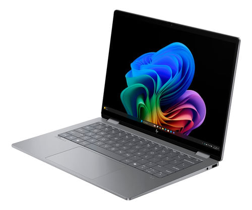Nueva HP OmniBook X Flip 14 Next Gen AI PC. Con el lápiz inteligente crea en la pantalla OLED 3K, rendimiento con 14 horas de duración de batería y seguridad con Windows Hello.