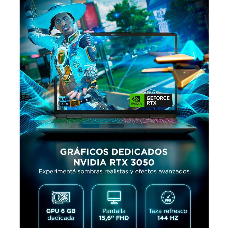 Equipada con una NVIDIA GeForce RTX 3050 con 6GB dedicados, ofrece imágenes detalladas y rendimiento superior en títulos actuales.