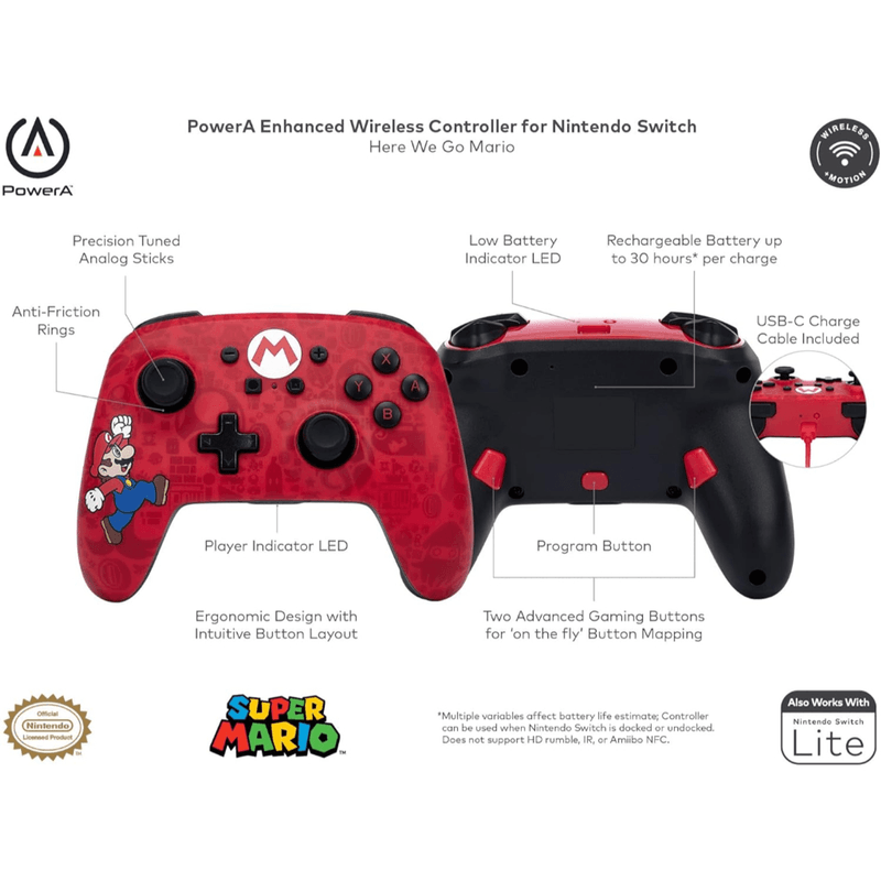Joystick Inalámbrico Mejorado PowerA para Nintendo Switch - Super Mario Here We Go Edition