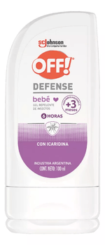 Aplicar OFF! Defense Bebé en la piel expuesta. Para aplicar en la cara: primero aplique en las manos y luego lleve a la cara. Si es necesario, vuelva a aplicar cada 6 horas o cada vez que se moje, sude excesivamente o practique ejercicios intensos. Aplicar una vez por día en bebés de 3 meses a 1 año de edad. No aplicar debajo de la ropa. Lávese las manos con agua y jabón después de usar.