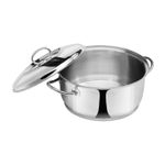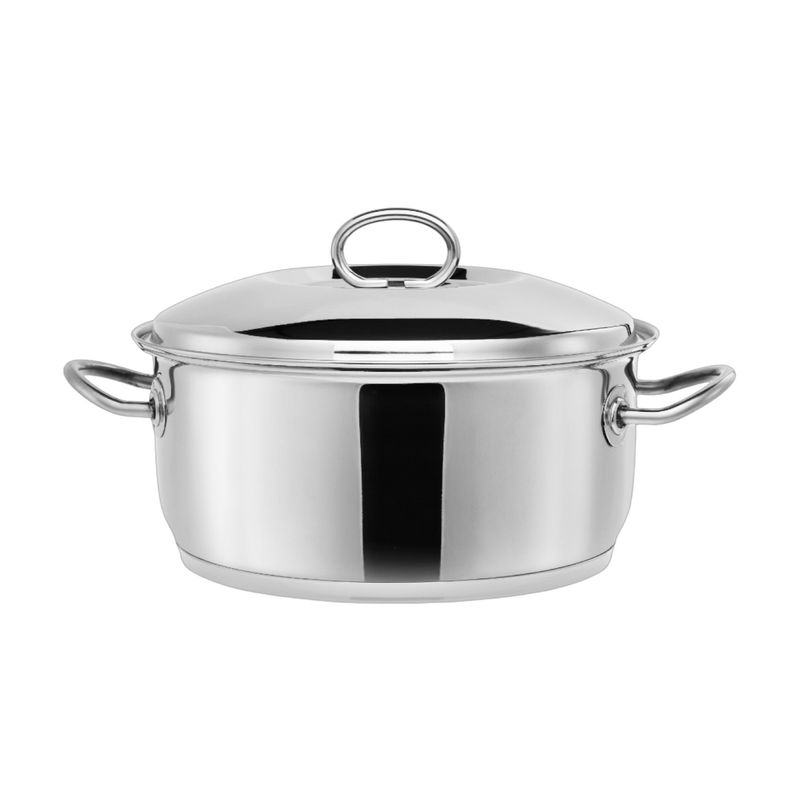 Si te encanta cocinar para toda la familia o preparar platos en cantidad, la Cacerola Cabernet 24 x 11 cm es tu mejor aliada. Hecha con acero inoxidable 18/10 de 0,7 mm de grosor, garantiza seguridad, durabilidad y una cocción eficiente, sin liberar sustancias tóxicas en los alimentos.