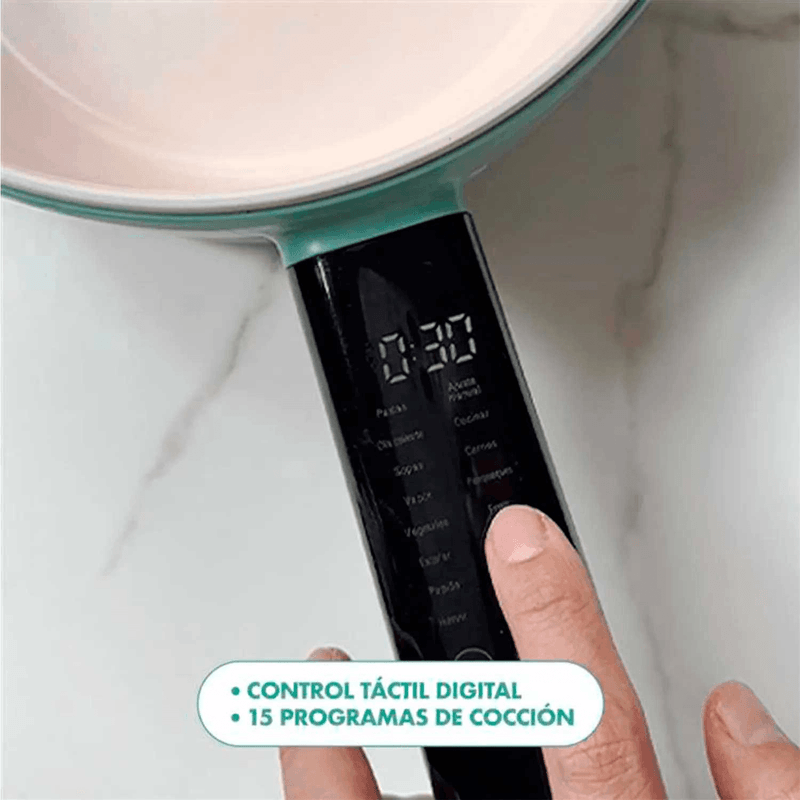 • Pantalla digital que muestra las opciones elegidas y el avance del proceso de cocción