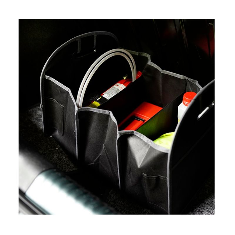 Modelo Car Organizer: Organizador para auto plegable, con tres compartimientos internos. Medidas: 33 x 32 x 17 cm. Tahg. Material Polipropileno. Origen: China.