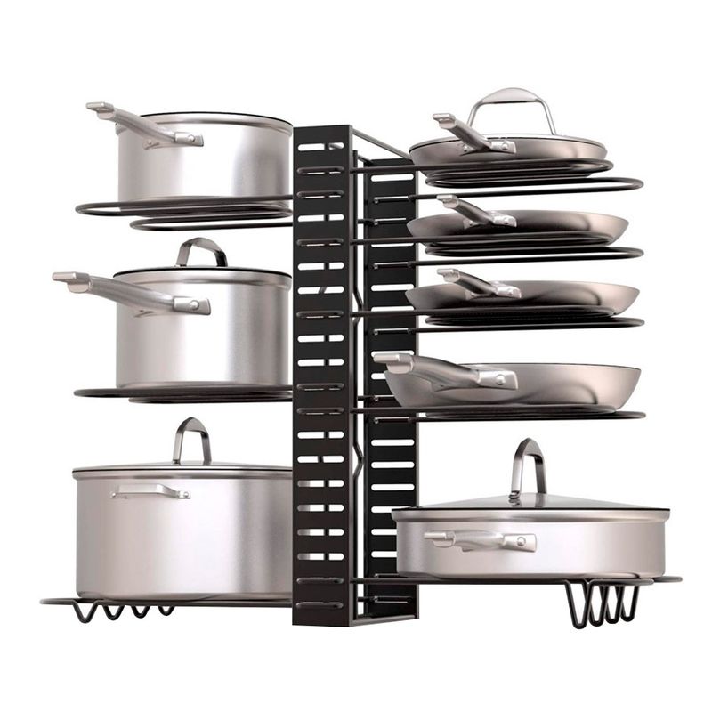 Optimiza tu espacio en la cocina y mantén tus ollas, sartenes y tapas perfectamente organizadas con nuestro Organizador de Cocina para Ollas y Sartenes.