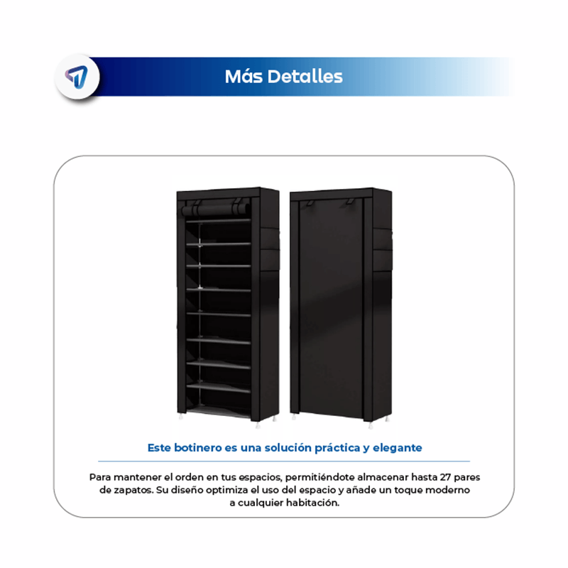- Gran capacidad para alrededor de 28 pares de zapatos.