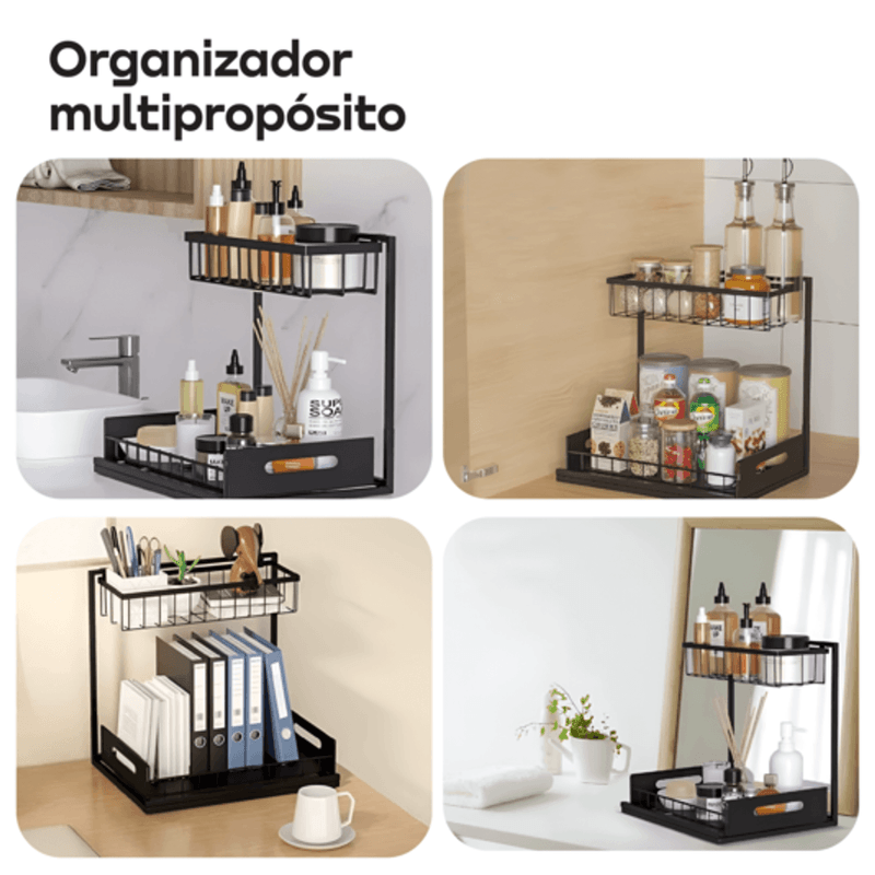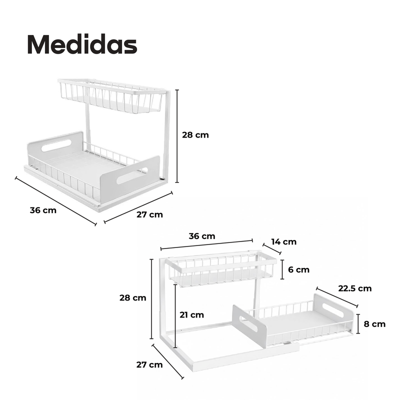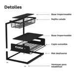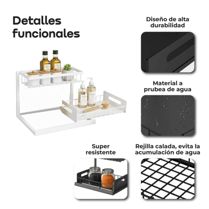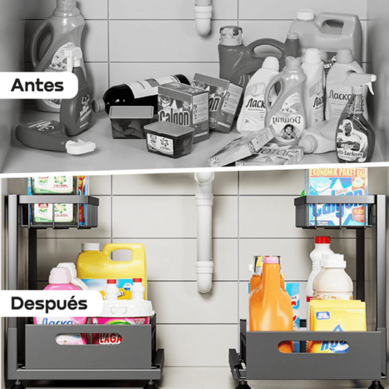 Transformá tu cocina, baño o escritorio con el organizador bajo mesada WAGGS ORGC03, diseñado para optimizar espacios reducidos con una estructura de hierro resistente y estantes tipo rejilla que mejoran la higiene y la visibilidad. Su estante inferior deslizante tipo cajón facilita el acceso rápido a los productos de uso diario, mientras que el diseño calado evita la acumulación de humedad y aporta mayor durabilidad. Compacto, estable y multipropósito, es ideal para alacenas angostas, bajo mesada, lavaderos, baños o escritorios, permitiéndote ordenar productos de limpieza, condimentos, cosmética o accesorios con practicidad y eficiencia. Una solución funcional y duradera para mantener cada espacio más claro, ordenado y aprovechado al máximo.