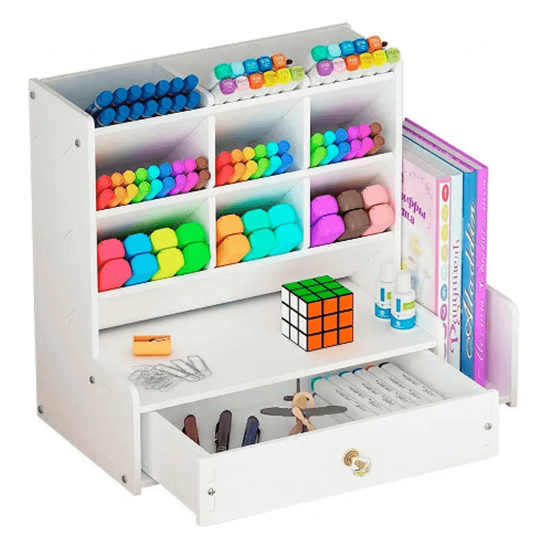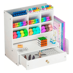 Organizador de escritorio multifunción con cajones y estantes perfecto para ayudar en la organización de tus espacios de trabajo o estudio!.Fabricado en pvc, su construcción es resistente, segura y no tóxica. Su presentacion es en bolsa de tornillos para armar, que conecta firmemente cada pieza, lo que lo hace super estable y comodo para retirar lo que necesites sin que mueva. Puede sostener tijeras, lapiceras, crayones, lápices, marcadores, resaltadores o artículos pequeños, como clips, banditas de goma, alfileres. Es un producto muy versatil! Tambien podes usarlo en tu mesita de luz para maquillajes, cremas
