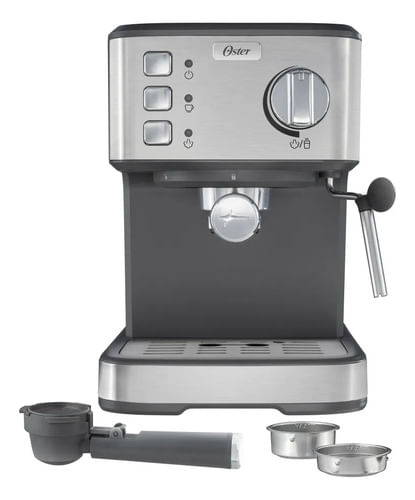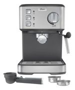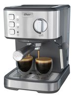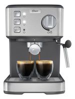 La cafetera espresso compacta de Oster® combina un elegante diseño con acabados en acero inoxidable y un tamaño ideal para cualquier cocina.