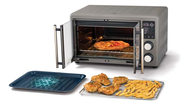 El Horno Aifryer Oster STTV42FDAR es la solución ideal para quienes buscan versatilidad y eficiencia en la cocina. Con una capacidad de 42 litros, este horno eléctrico permite preparar una amplia variedad de platillos, desde asados hasta repostería, todo con un acabado dorado y crujiente. Su diseño de puerta francesa no solo es elegante, sino que también facilita el acceso a los alimentos, haciendo que la experiencia de cocinar sea más cómoda.