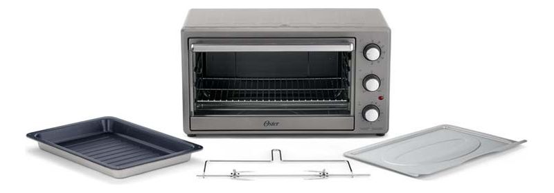 Incluye accesorios prácticos: varilla para rostizar con asa, rejilla para hornear, bandeja para migas y bandeja para hornear con recubrimiento Oster DiamondForce, 15 veces más fácil de limpiar y resistente al uso intensivo.