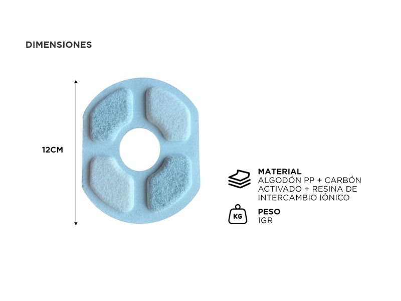 material: algodón PP + carbón activado + resina de intercambio iónico
