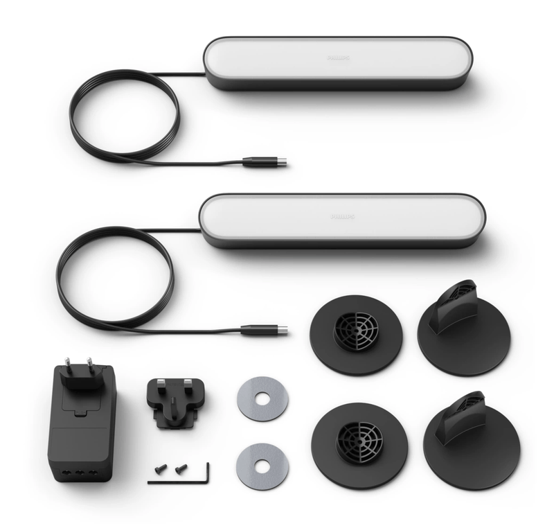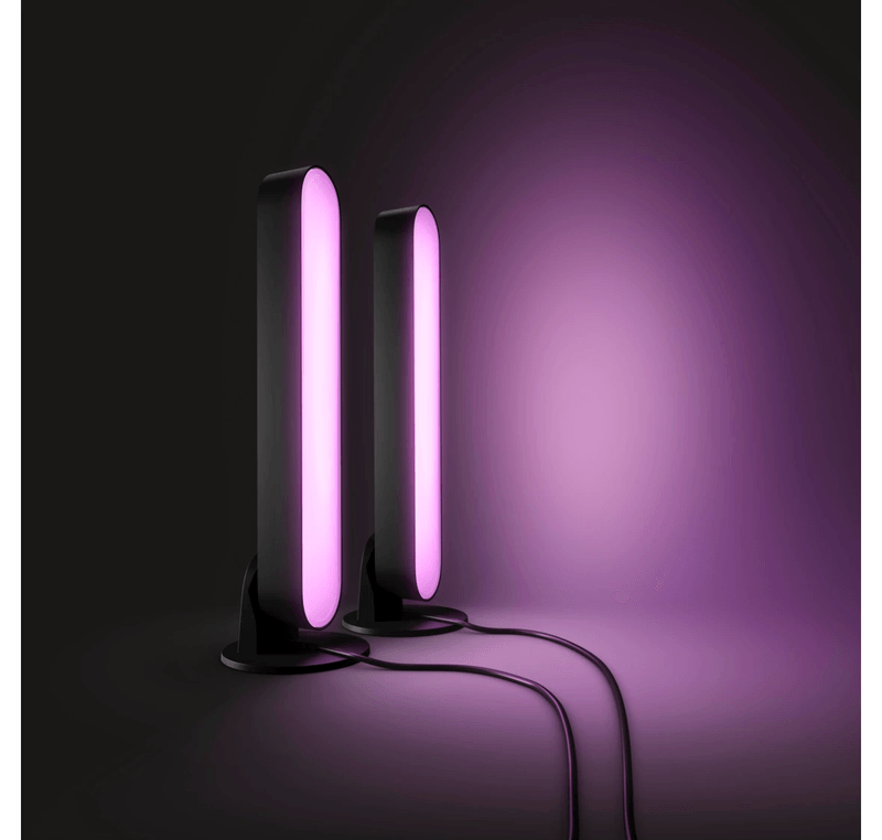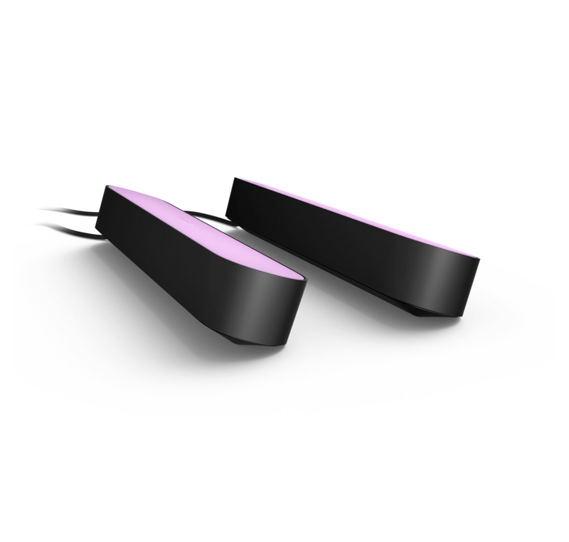 Crea un toque de luz inteligente y colorida con el elegante diseño de la barra de luces Play en negro. Este paquete de 2 barras de luces Play, que incluye dos barras de luces y una fuente de alimentación que conecta hasta tres luces, se puede colocar en posición vertical, acostada o colocada en la parte posterior de su televisor con los soportes incluidos.