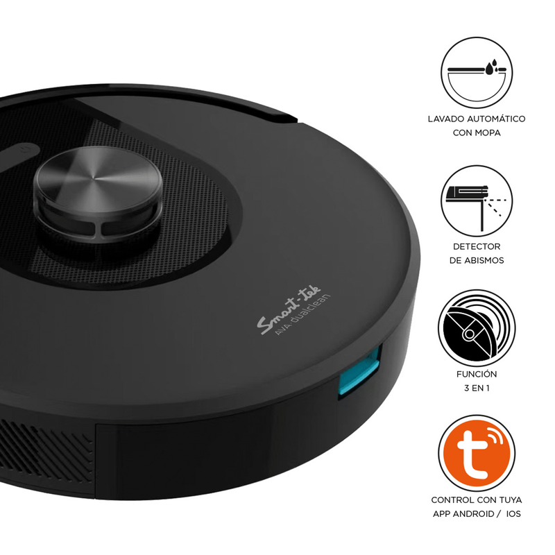 - Aspiradora Robot Smart-Tek AVA Dual Clean con tecnología 3 en 1: barre, aspira y trapea.