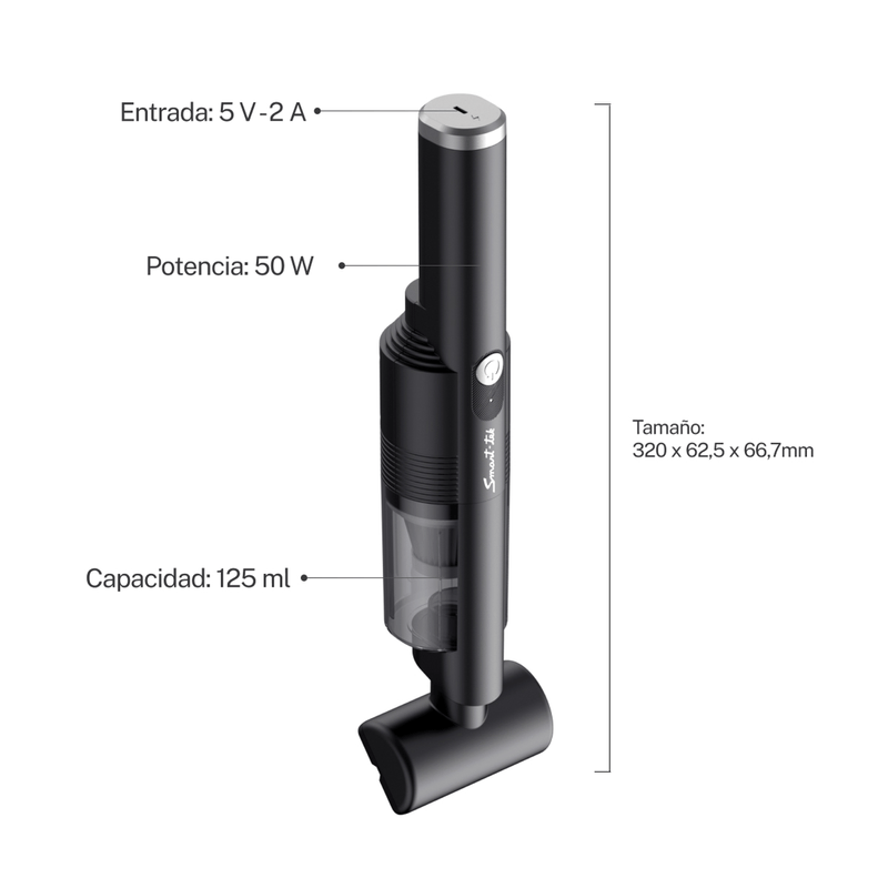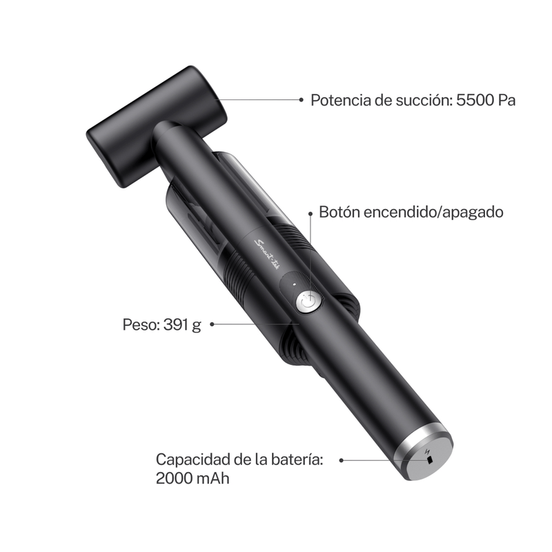 - Potencia de succión: 5500 Pa, para una limpieza potente y rápida.