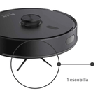 - Base inteligente con sistema de autovaciado ciclónico y bolsa recolectora de polvo de 3 L, permitiendo hasta 11 limpiezas sin vaciar.