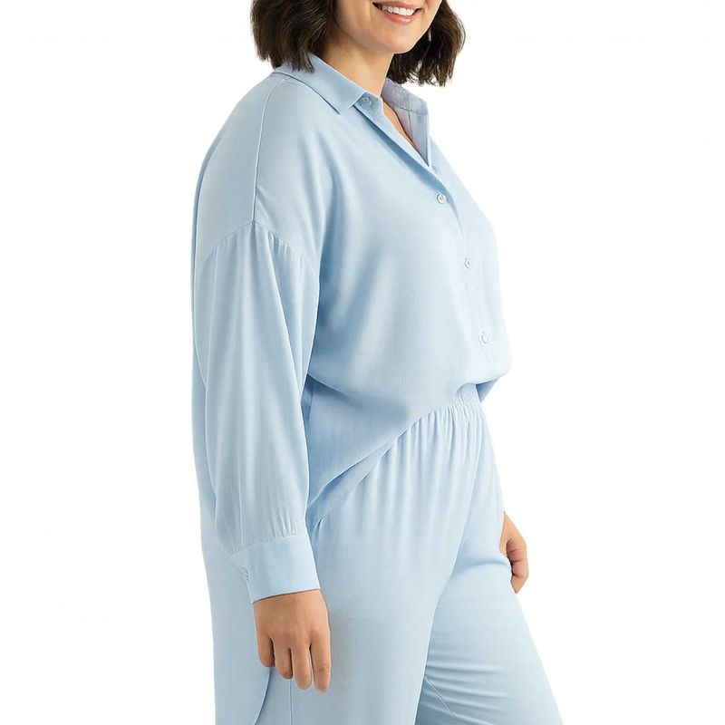 Incluye una camisa amplia y larga con una hermosa caída, ideal para usar abierta o cerrada.