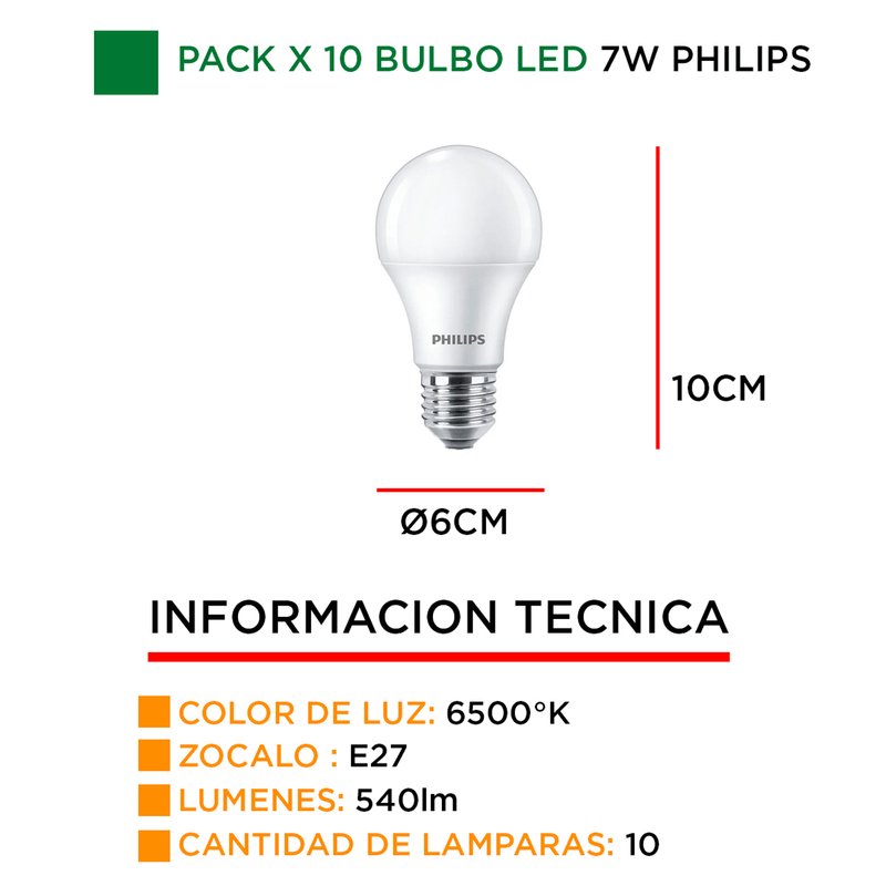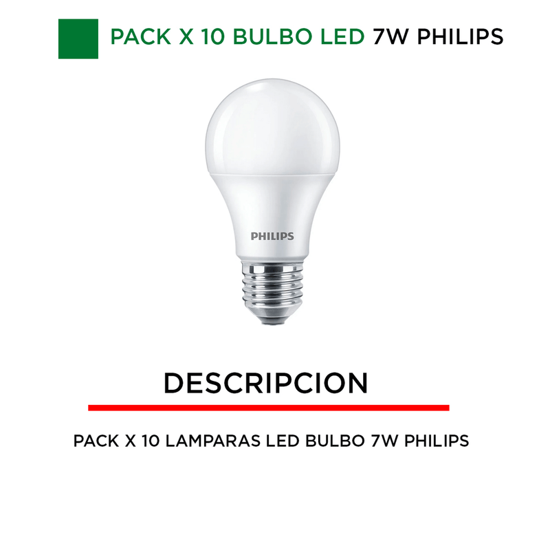 PRODUCTO: Pack x 10 lamparas Philips Ecohome led bulbo 7w = 50w