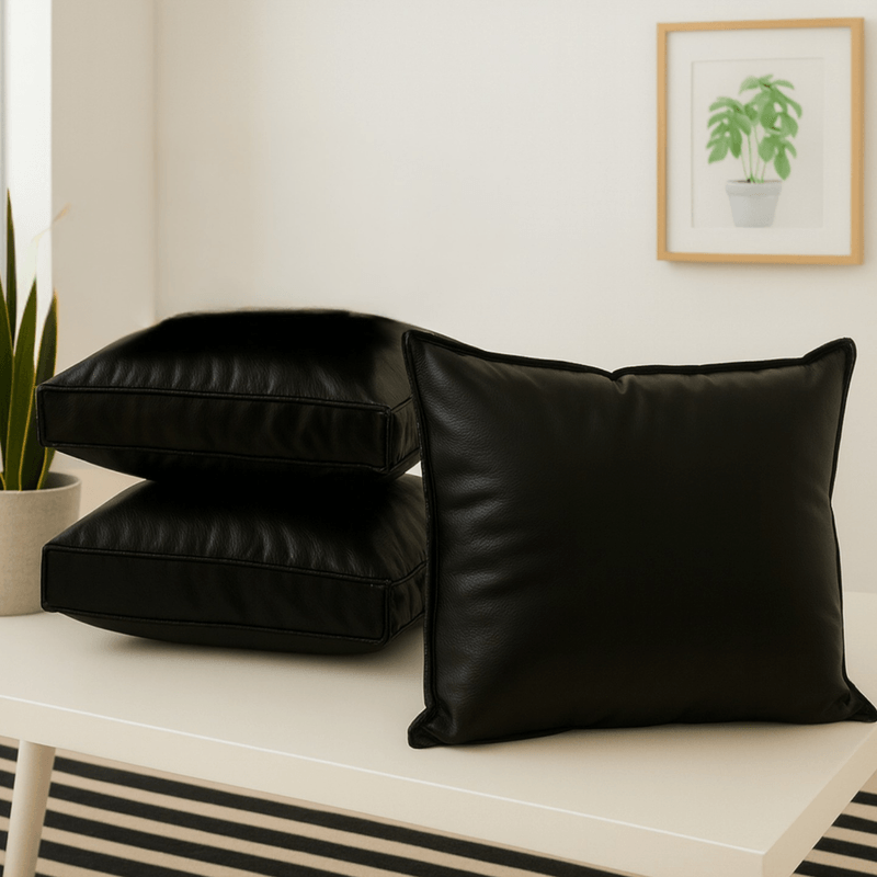 PACK X3 ALMOHADONES 50X50 ECOCUERO IDEAL SILLON ALGARROBO - Con cierre y almohadón interno de copos de goma espuma