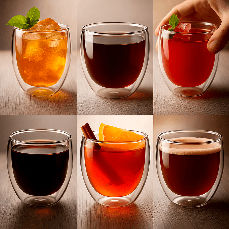 Se pueden utilizar como vasos de café, latte macchiato, cappuccino, té helado, cerveza, cócteles, postres y mucho más.
