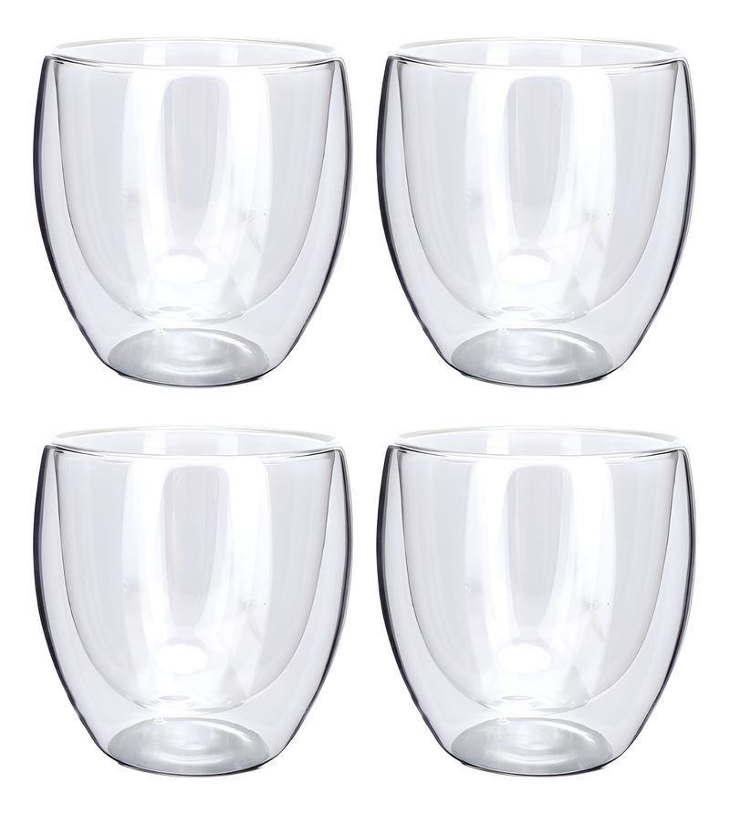 COMBO X4 HOGAR ACTUAL VASO VIDRIO DOBLE TERMICO 250 ML