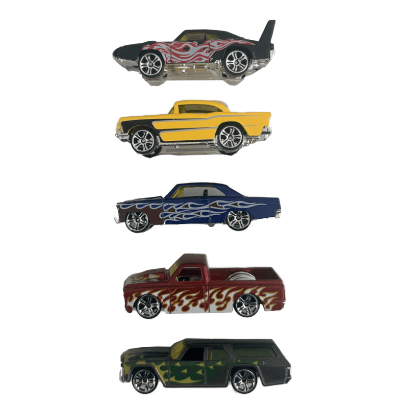 Este set incluye 5 autos únicos, diseñados con elegantes detalles que evocan la esencia de los modelos más icónicos. Cada auto, adornado con llamativas llamas, combina estilo, nostalgia y calidad, haciendo de este set un imprescindible para coleccionistas y amantes de los autos vintage.