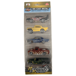 Características:- Contenido: 5 autos clásicos de diseño retro con detalles de llamas.