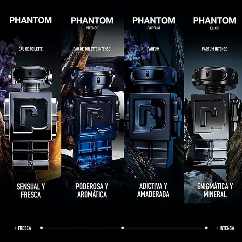 Phantom Elixir de Paco Rabanne es una fragancia masculina intensa y sofisticada, creada para quienes buscan dejar una huella inolvidable. Su salida fresca con acorde marino se combina con un corazón profundo de oud mineral, y se envuelve en una base cálida y adictiva de vainilla, logrando un aroma magnético, moderno y audaz.