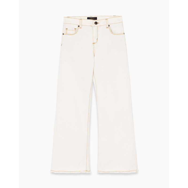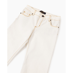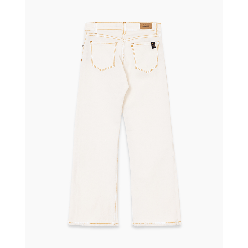 - 5 bolsillos de corte recto y ancho en las piernas. - Tiene cintura regulable hasta talle 8 mediante elástico con ojal interno. - Bolsillos traseros bordados con alegoría marcaria. - Gabardina 98% algodón 2% spandex.
