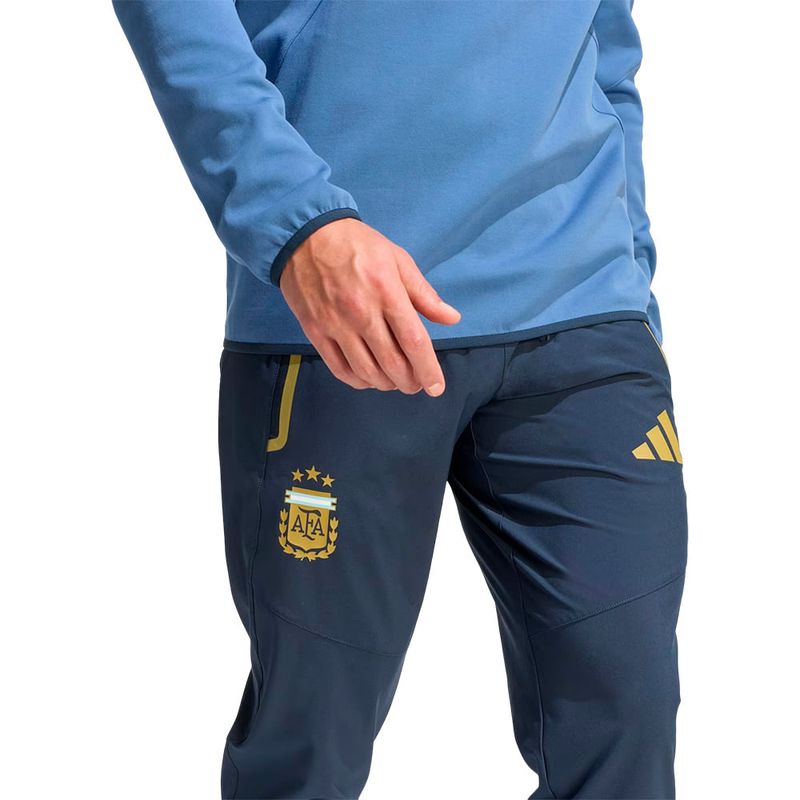 La funcionalidad deportiva y la estética urbana se fusionan en los pantalones de entrenamiento de la Selección Argentina 26, creados para aquellos que exigen rendimiento sin sacrificar el estilo en su día a día. Confeccionados en un tejido técnico transpirable AEROREADY, estos pantalones ofrecen un diseño ligero y una caída impecable. Sus detalles en contraste y los bolsillos con cierre añaden funcionalidad y un toque distintivo, siguiendo el ritmo de tu vida activa. Una silueta entallada y una cintura elástica segura de tiro medio con cordón ajustable proporcionan un ajuste ceñido que se adapta a cada movimiento, aportando la energía inconfundible de adidas a tu vestuario, convirtiéndolos en un complemento versátil y esencial para tu colección.