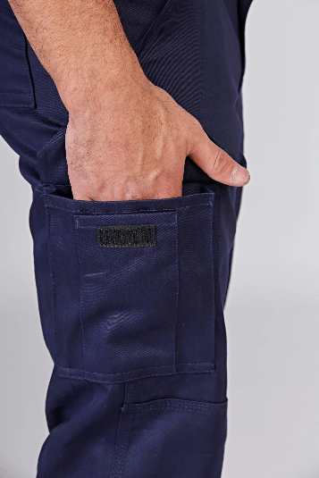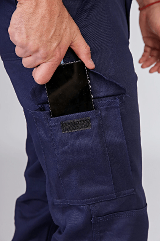 Modelo con el calce y ajuste perfecto, clásico con 6 bolsillos utilitarios, 2 superiores delanteros, 2 traseros plaque con tapa y 2 laterales de gandes dimensiones con fuelle y velcro, beneficiosos para un gran número de trabajos al poder facilitar el guardado de diversos artículos. Bolsillo portacelular oculto sobre bolsillo lateral derecho.