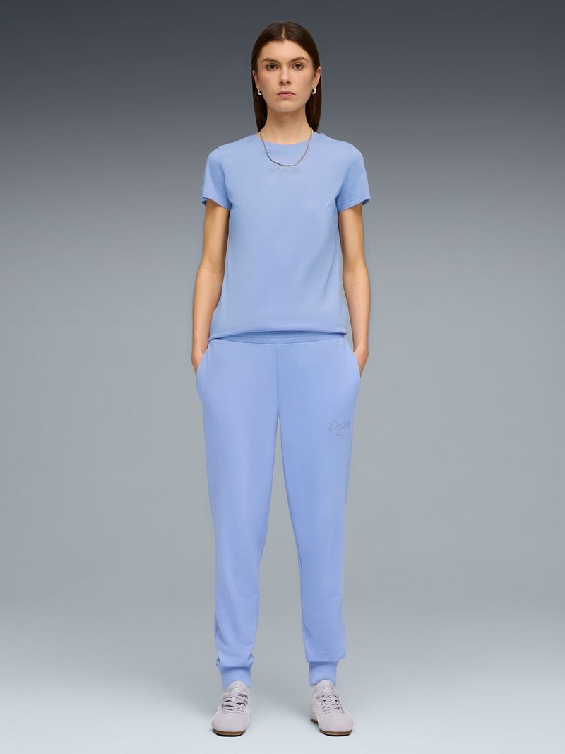 Pantalón Puma Essentials Script Sportstyle Mujer Moda Celeste