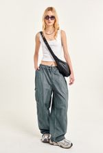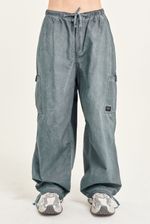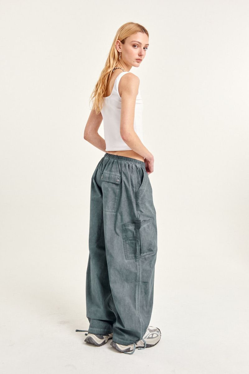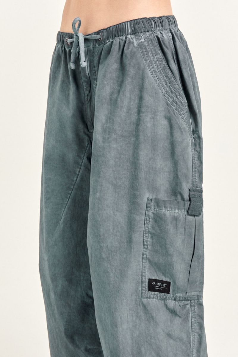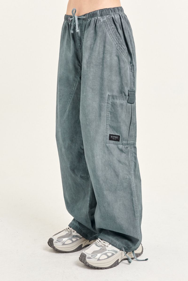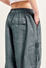 Pantalón de gabardina con terminación washed que le da un look relajado y versátil. Tiene cintura elástica con cordón regulable, pinzas delanteras, bolsillos laterales con tapa y bolsillo trasero con botones metálicos. El bajo cuenta con cordón ajustable y accesorios personalizados de marca. Combina muy bien con remeras estampadas o musculosas básicas.
