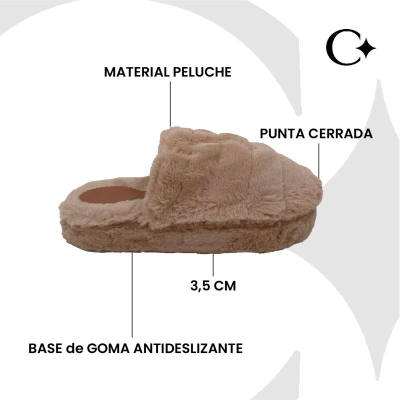 Pantufla de mujer con peluche, punta cerrada, con una base de goma antideslizante, super comoda y liviana