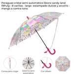 El Paraguas Cristal Semi Automático Skora 19” es una opción práctica y estilizada para quienes buscan protección contra la lluvia sin resignar diseño ni comodidad.