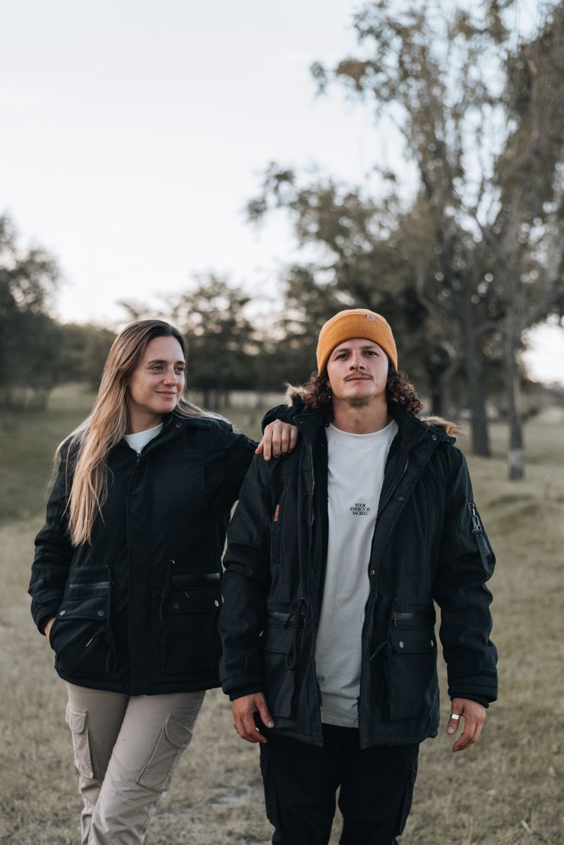 Campera parka de gabardina con interior de corderito. Capucha y piel desmontable por separado. Combina estilo y funcionalidad en un diseño único con su exterior de gabardina y un cálido corderito en el interior que te mantiene abrigado/a.
