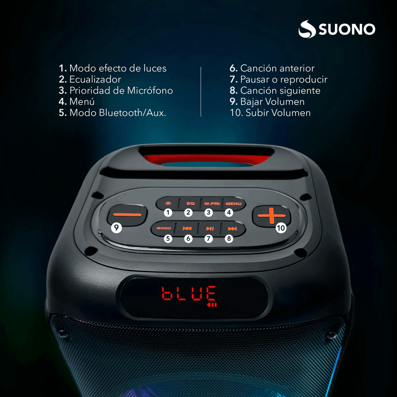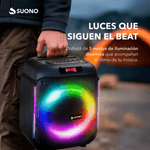 Disfrutá tu música favorita con el Parlante Bluetooth Suono de 6.5”, ideal para reuniones, eventos o uso diario. Compacto, potente y con luces RGB dinámicas, ofrece un sonido envolvente y un diseño moderno que se adapta a cualquier ambiente.