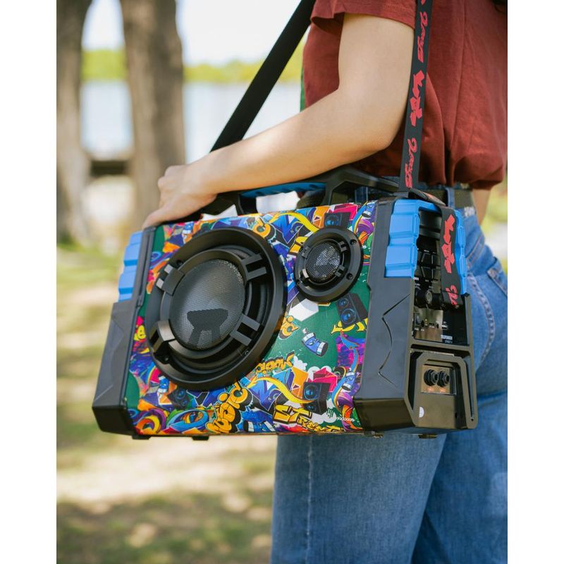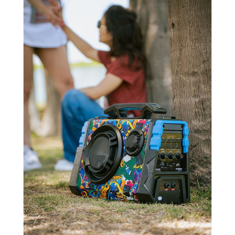 Descubre el Parlante Bluetooth Telefunken Street 6, una opción ideal para quienes buscan calidad de sonido y portabilidad. Con una potencia de salida de 40W, este parlante ofrece un rendimiento excepcional, perfecto para animar cualquier reunión o evento al aire libre. Su diseño compacto y ligero, con un peso de solo 4 kg, facilita su transporte, mientras que la manija integrada permite llevarlo cómodamente a donde desees.
