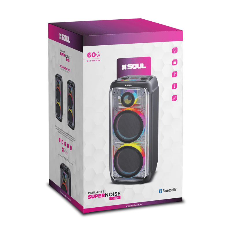 Parlante Bt Super Noise 60w 8"X2 Led Negro