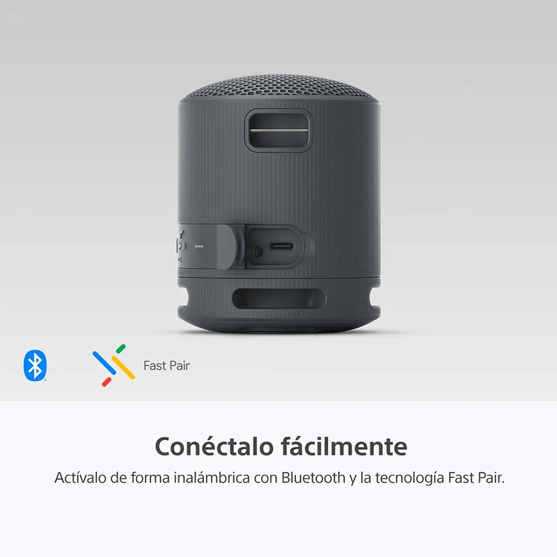 El parlante Sony SRS-XB100 ofrece un sonido potente y nítido en un cuerpo compacto. Con una batería de hasta 16 horas de duración, es perfecto para usar en casa o fuera con amigos. Además, cuenta con un micrófono integrado para llamadas con manos libres y es resistente al agua con clasificación IP67, lo que lo hace ideal para actividades al aire libre.