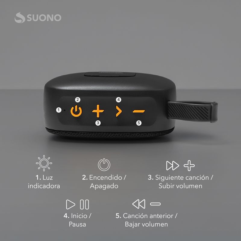 -Controles integrados: Encendido, reproducción y volumen desde el equipo.